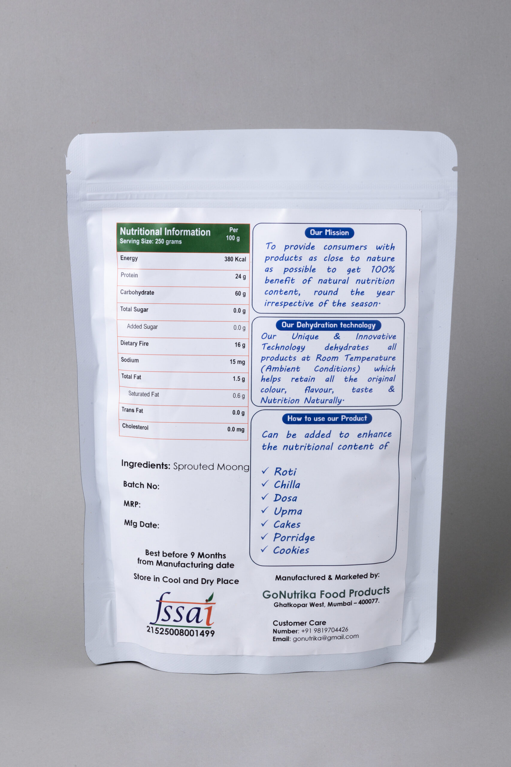 Can be added to enhance the nutritional content of – Roti, Chilla, Dosa, Upma, Cakes, Porridge, Cookies etc.